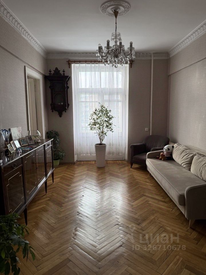 Сдается просторная трехкомнатная квартира в шаговой доступности от метро "Сокол" — всего одна минута пешком! Общая площадь составляет 75 кв. м, из которых 50 кв. м — жилая. Квартира расположена на 9 этаже 10-этажного кирпичного дома, построенного в 1953 году. Высокие потолки — 3,2 метра — создают ощущение простора и свободы.