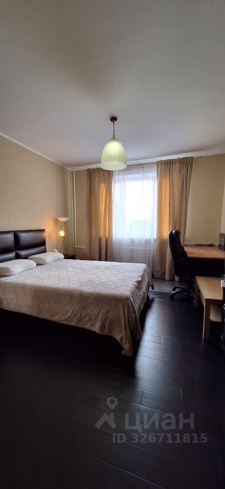 В спальне: много мест для хранения вещей, 2 х спальная кровать, рабочий стол и кресло;