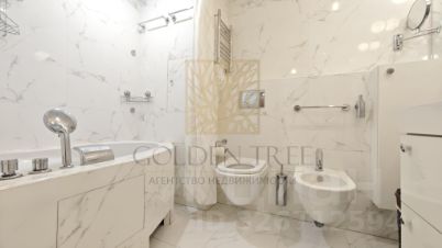В квартире вся необходимая мебель и техника: микроволновая печь, духовой шкаф, холодильник, телевизор, посудомоечная и стиральная машины. Вся необходимая мебель есть как на кухне, так и в комнатах. Большой и очень вместительный гардероб, полноценная двуспальная кровать, раскладывающийся диван, вместительный шкаф в прихожей. Несмотря на размеры, в квартире есть всё и при этом не тесно. Просторная ванная комната с большой ванной, зеркалом во всю стену и биде.