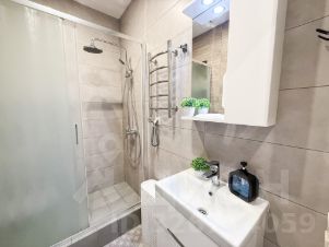 Просторная душевая с тропическим душем, мощный фен Dyson.