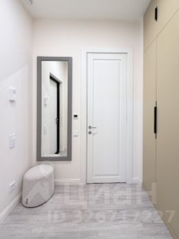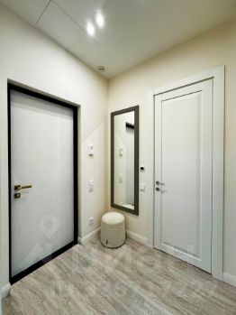 - прихожая зона имеет полноразмерное зеркало, пуфик, шкафчик для принадлежностей;