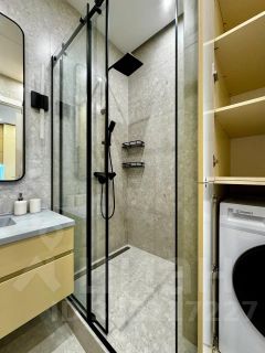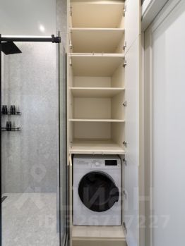 - Ванной комнате оснащена душевая кабина с раздвижными дверцами, стирально-сушильной машиной, гардеробом для принадлежностей, зеркалом с подсветкой, гигиеническим душем и санузлом;