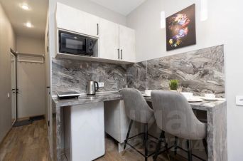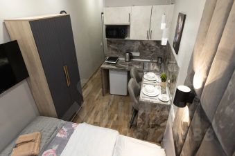 - Кухня с холодильником, плитой, микроволновкой, чайником и посудой