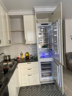 Квартира с евроремонтом, полностью готова к проживанию. В наличии современная мебель на кухне и в комнатах. Просторная кухня оснащена всей необходимой техникой: есть холодильник, 2-а кондиционера, телевизор и стиральная машина. В квартире два санузла: один совмещенный и один отдельный, что удобно для большой семьи. В ванной комнате установлены как ванна, так и душевая кабина. Окна выходят во двор, поэтому в квартире всегда тихо и спокойно.