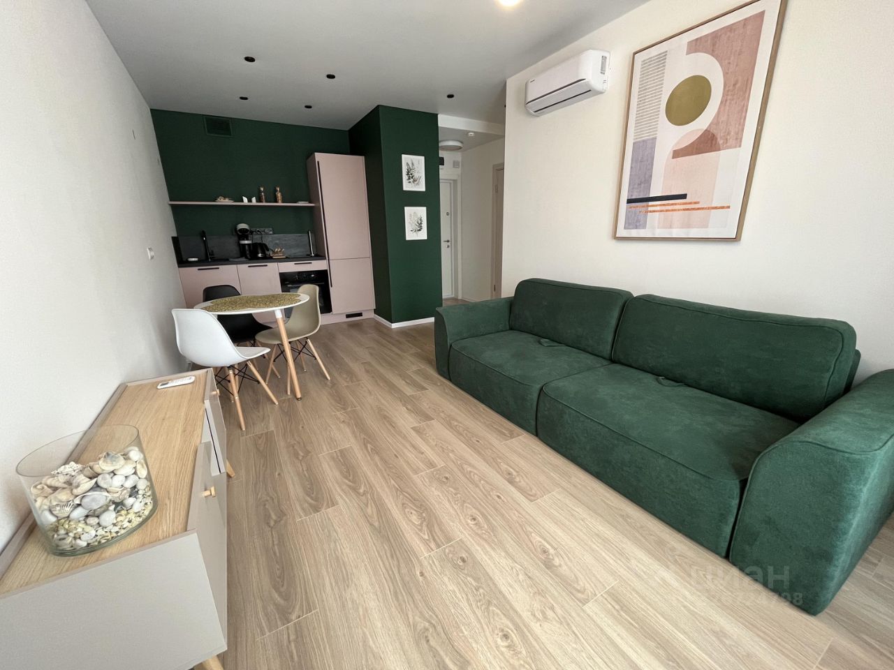 В квартире отличный ремонт со всей необходимой для комфортного проживания мебелью и техникой, включая 2 кондиционера ( на кухне и в спальне ) и посудомоечную машину.