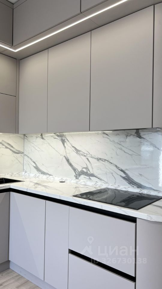 Большая кухня с качественной техникой, мойка с измельчителем отходов.