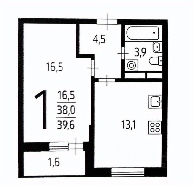 Общая площадь38,1 м²