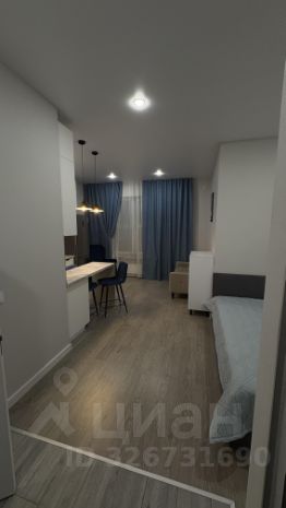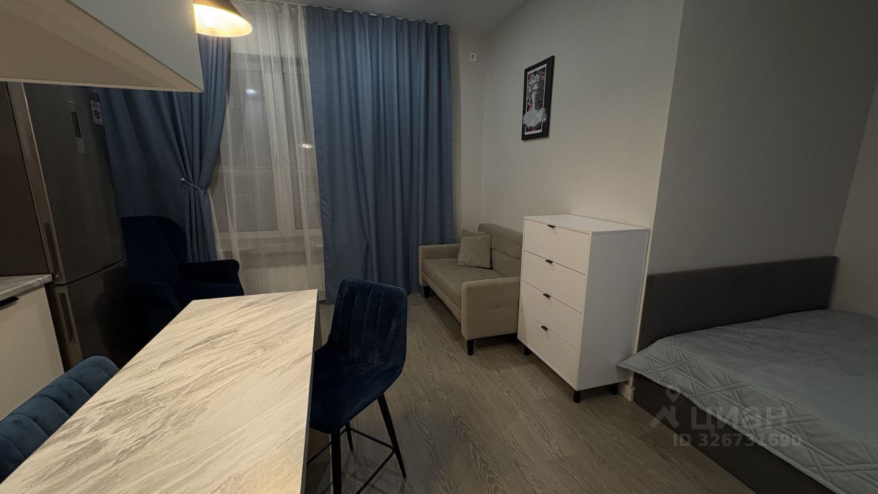 Сдается квартира-студия на длительный срок. Год постройки — 2020. Просторная жилая зона площадью около 25м² с современным ремонтом. В квартире есть все необходимое для комфортного проживания: холодильник, стиральная машина, плита, посудомойка, шкафы и удобная мягкая мебель. Есть кресло, диван и кровать.