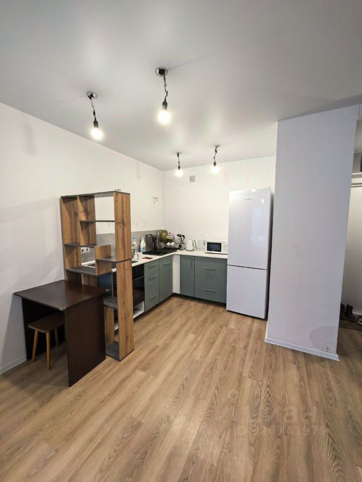 В квартире выполнен косметический ремонт от застройщика. В комнатах и на кухне есть необходимая мебель, а также вся необходимая техника: холодильник, посудомоечная и стиральная машины, телевизор. Ванная комната оборудована ванной.