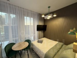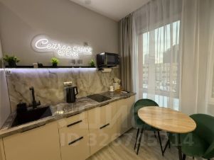 Это не просто студия, а место, где приятно отдыхать: мягкий свет, дизайнерские детали, стильная кухня с подсветкой и фотогеничная зона с неоновой надписью Сейчас самое время.
