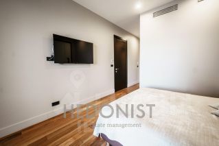 Апартамент состоит из: просторной кухни-гостиной, спальни, 2 санузлов, гардеробной, постирочной зоны.