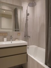 В новом жилом комплексе "Символ" сдается уютная квартира. В квартире сделан дизайнерский ремонт от одной из топовых дизайн-студий Москвы. Дом оснащён всеми современными удобствами: два пассажирских лифта и один грузовой, наземная и подземная парковка, пандус и мусоропровод. Интернет уже подключён, поэтому можно сразу пользоваться. До cтaнции мeтpo "Aвиaмoторная" всего 11 минут пешком. Помещения: Общая площадь квартиры: 40,9 кв.м. Прихожая довольно функциональна, в ней расположен большой гардеробный шкаф, банкетка с зеркалом и верхние антресоли для хранения. В гостиной расположена вся необходимая мебель: диван-кровать, гардеробный шкаф, тв зона с телевизором и тумбой, а также зона с трансформирующимся столом, который может выполнять функцию рабочего или туалетного столика. Кухня просторная, с большим кухонным гарнитуром в котором есть вся необходимая встроенная техника: варочная панель с вытяжкой, встроенный духовой шкаф, встроенная микроволновая печь, встроенный холодильник с морозильной камерой и посудомоечная машина. Рядом располагается обеденный стол на 4-х человек, а также на кухне предусмотрена небольшая зона отдыха с большим шкафом для хранения техники и редко используемых вещей. Рядом располагается раскладной диван, на случай приезда родственников или гостей. В ванной комнате также предусмотрено все необходимое: тумба с зеркалом и удобной раковиной, подвесной унитаз, шкаф в котором располагается накопительный водонагреватель, комфортная ванна, а также полки для хранения бытовой химии. Инфраструктура: Закрытый внутpенний двор для прогулoк. Вдоль всего комплекса располагается 2-х километровый парк "Зеленая река" с зелеными холмами, прогулочными дорожками, зонами отдыха, беседками, перголами, амфитеатрами, беговыми и велодорожками, а также воркаут-площадки для занятий спортом. В квартале также сформирована полноценная городская среда с множеством объектов социальной, спортивной и культурной инфраструктуры. На территории комплекса открыты лицей при МГТУ им. Баумана, детские сады, физкультурно-оздоровительные комплексы, поликлиники, кафе, супермаркеты, рестораны и многое другое. Условия аренды: Тип аренды: долгосрочная аренда от 1 года Идеально подойдет для одного человека или пары. Стоимость аренды: 110 000 руб. в месяц + счетчики (холодная вода, горячая вода, электроэнергия, интернет) Залог: в размере 1 месяца аренды (110 000 руб.) Комиссия: 30% (33 000 руб.) Общая сумма при заселении: 110 000 руб. (за 1-й месяц аренды) + 110 000 руб. (залог) + 33 000 руб. (комиссия) = 253 000 руб.