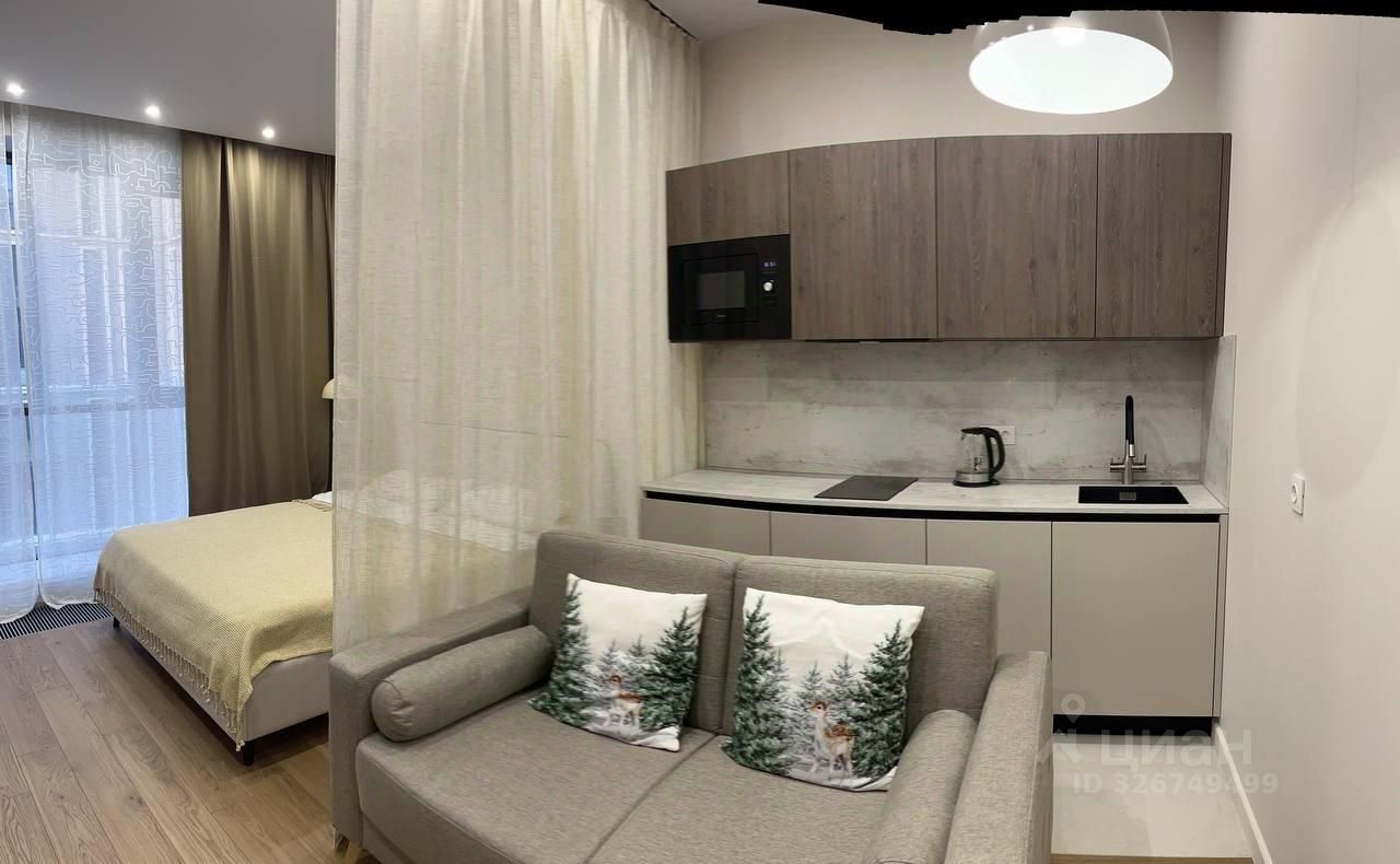 Зона спальни отделяется от кухонной зоны шторой. Так же имеется рабочее место , телевизор диагональ 55 и интернет.