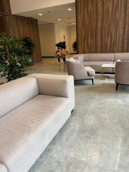 Дом премиум класса, в лобби массажное кресло, в котором можно бесплатно расслабиться после рабочего дня.