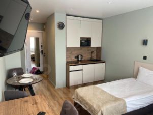 Апартаменты расположен на высоком этаже 22-этажного гостиничного комплекса Салют. Свежий качественный евроремонт, идеальное состояние. Студия полностью оборудована мебелью и техникой для комфортного проживания и готова к заселению.