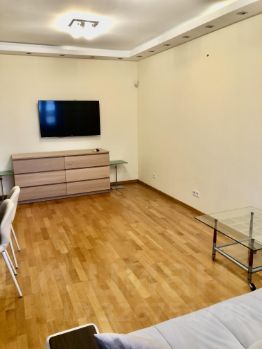 В квартире есть все необходимое для комфортного проживания. Просторная комната и кухня оборудованы современной мебелью. На кухне установлена вся необходимая техника: кондиционер, холодильник, телевизор. В ванной комнате установлена душевая кабина. Окна квартиры выходят во двор, что обеспечит вам тишину и спокойствие.