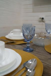 Кровать - диван на первом этаже и двуспальное размещение на втором уровне, так же телевизор, холодильник, посуда, электроплита, чайник, стиральная машина, сушилки для белья, фен, утюг, вентилятор.