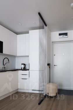 Площадь - 31,6 кв.м, одна изолированная комната, кухня-гостиная, санузел и прихожая.