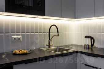 Вся техника встроенная. Вместительный холодильник, посудомоечная машина 45 см, духовой шкаф, стирально-сушильная машина, СВЧ-печь.