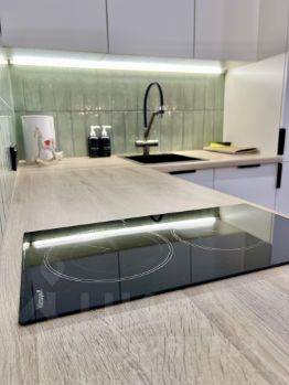 В квартире сделан современный стильный новый ремонт. Здесь есть абсолютно всё для комфортного проживания: кондиционер, холодильник, посудомоечная машина, телевизор и стиральная машина, посуда чайник утюг итд . Мебель продумано расположена как на кухне, так и в жилой зоне. Ванная комната оборудована душевой кабиной с тропическим душем, подогрев полов, разноуровневая освещение.