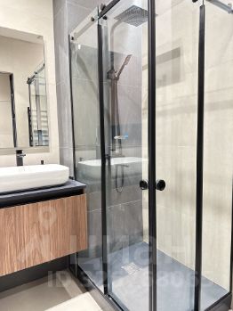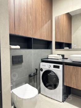 - Ванная комната оснащена душевой кабиной, зеркалом, парящая тумба под раковиной, полотенцесущитель, стиральная машина + сушилка, теплый пол и санузлом.