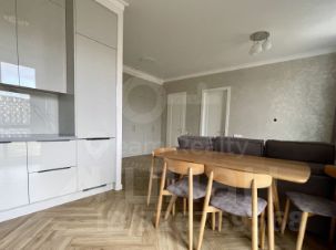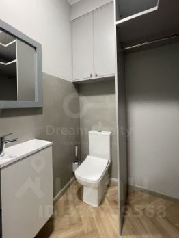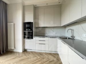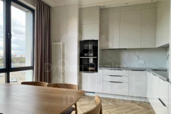 Планировка квартиры: кухня-гостиная с панорамным окном в пол, спальня, гардеробная, санузел с ванной и душем, санузел-прачечная, просторный холл. Квартира полностью готова для проживания, оснащена мебелью и встроенной бытовой техникой: варочная поверхность, духовка, микроволновая печь, посудомоечная машина, вытяжка, холодильник, стиральная машина. Окна выходят на бизнес-центр ComCity.