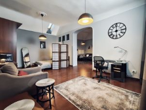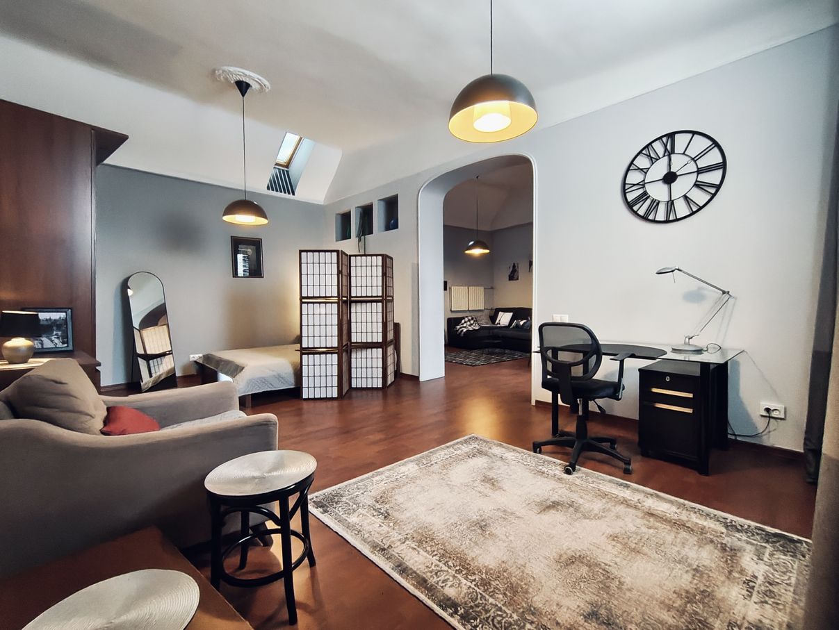 Просторная красивая нестандартная двухкомнатная квартира-студия 56 кв.м. в пяти минутах от Кремля. Последний мансардный девятый этаж знаменитого исторического сталинского дома. Квартира тихая, окна выходят на сторону двора, потолки высокие. Санузел с душем, отдельная прихожая. Квартира меблирована, укомплектована техникой - посудомоечная машина, два кондиционера, бойлер на летнее отключение горячей воды, новый холодильник, телевизор, быстрый проводной интернет, дополнительное спальное место - раскладной диван. Есть большое скрытое от глаз место для хранения чемоданов и прочих габаритных предметов. В стоимость входит консьержка и проезд в охраняемый двор одного автомобиля. Платежи по платёжке кроме счетчиков также включены. Залог 100% возможно распределить на несколько месяцев.