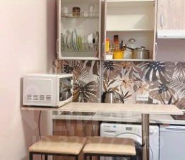 Полностью оснащена: постельное бельё, посуда, электрический чайник, вся мебель и техника (раскладной двуспальный диван, раскладное кресло-кровать, холодильник, шкаф, есть водонагреватель, микроволновка и др.)