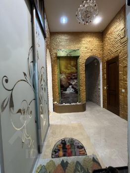 Входная зона по феншуй в виде водопада по стеклу и фонтаном.