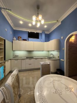 Просторная кухня выполнена на заказ, оборудована современной техникой.