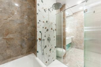 Функциональная планировка: стильная кухня-гостиная, мастер-спальня с собственной ванной комнатой (ванна и душ) и большой гардеробной комнатой с окном.