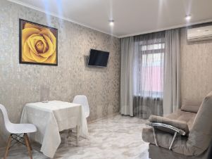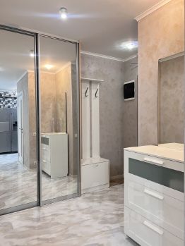 Квартира с просторной зоной кухни-гостиной и изолированной спальней. Полностью меблирована и со всей бытовой техникой (кондиционер, стиральная машина, телевизоры, микроволновая печь, вытяжка, двухкамерный холодильник, варочная панель, посудомоечная машина). Раздельный санузел, небольшая гардеробная комната, просторная прихожая с вместительной системой хранения.