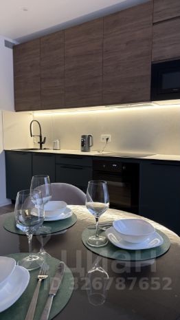 Современный район (фитнес-центр в доме, множество кафе, парковые зоны), спокойная среда, удобная логистика. От квартиры до метро 7 минут пешком.