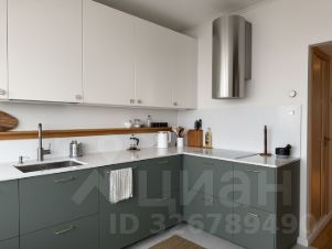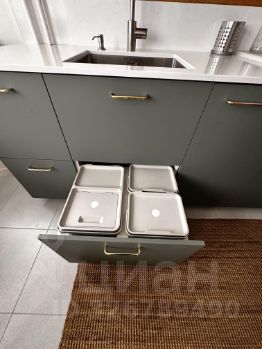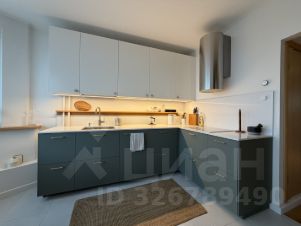 Кухонная зона укомплектована современной техникой: ПММ, духовка, микроволновая печь, вытяжка, холодильник, вместительные шкафы, обеденная группа. Спальная зона: двуспальная кровать, тумбочки со светильниками, комод, шкаф с системой хранения. Гостиная объединяет зону отдыха и рабочую зону.