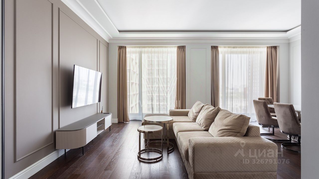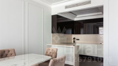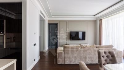 Спланирована просторная кухня-гостиная с обеденной зоной, мастер-спальня с собственной ванной комнатой и гардеробной, гостевой санузел, прихожая с встроенными шкафами. Апартаменты полностью меблированы и оборудованы бытовой техникой Neff. Из окон открывается вид в благоустроенный двор-парк с фонтанами.