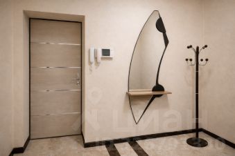 Интерьер выполнен в сдержанной современной эстетике. Натуральные фактуры, тёплая цветовая палитра, качественная мебель.