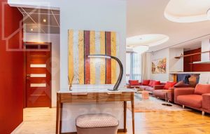 Планировка: гостиная с кухней и столовой, две изолированные спальни, кабинет, две ванные комнаты. Потолки 3,2м. Выполнен авторский ремонт в современном стиле. Квартира полностью укомплектована мебелью и техникой. Установлены: современные кондиционеры, интернет, теплые полы, домофон, бойлер. Вид из окон на благоустроенную территорию.