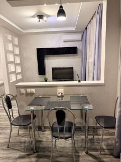В квартире сделан дизайнерский ремонт с очень продуманными разделенными зонами кухни, спальни и гостиной. В квартире есть вся современная мебель ( двуспальная кровать, диван, встроенные гардеробы в коридоре и комнате, кухонный гарнитур, стол) и техника (стиральная машина, посудомоечная машина, холодильник, телевизор, кондиционер, микроволновка) для комфортного проживания. В квартире есть застекленная, отделанная лоджия, из окон открывается красивый панорамный вид.