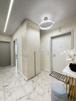 Присутствует вся необходимая мебель и техника для проживания, функциональная и высококачественная техника от Bosch. Теплый пол во всех зонах, где уложена плитка. Есть выводы под кондиционеры, в ходе проживания наймодатель их установит. Также обсуждается возможность со стороны собственника добавить в комнату без спального места просторную двуспальную кровать или спальное место для ребенка.