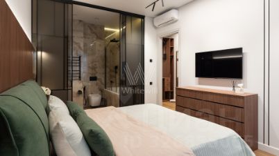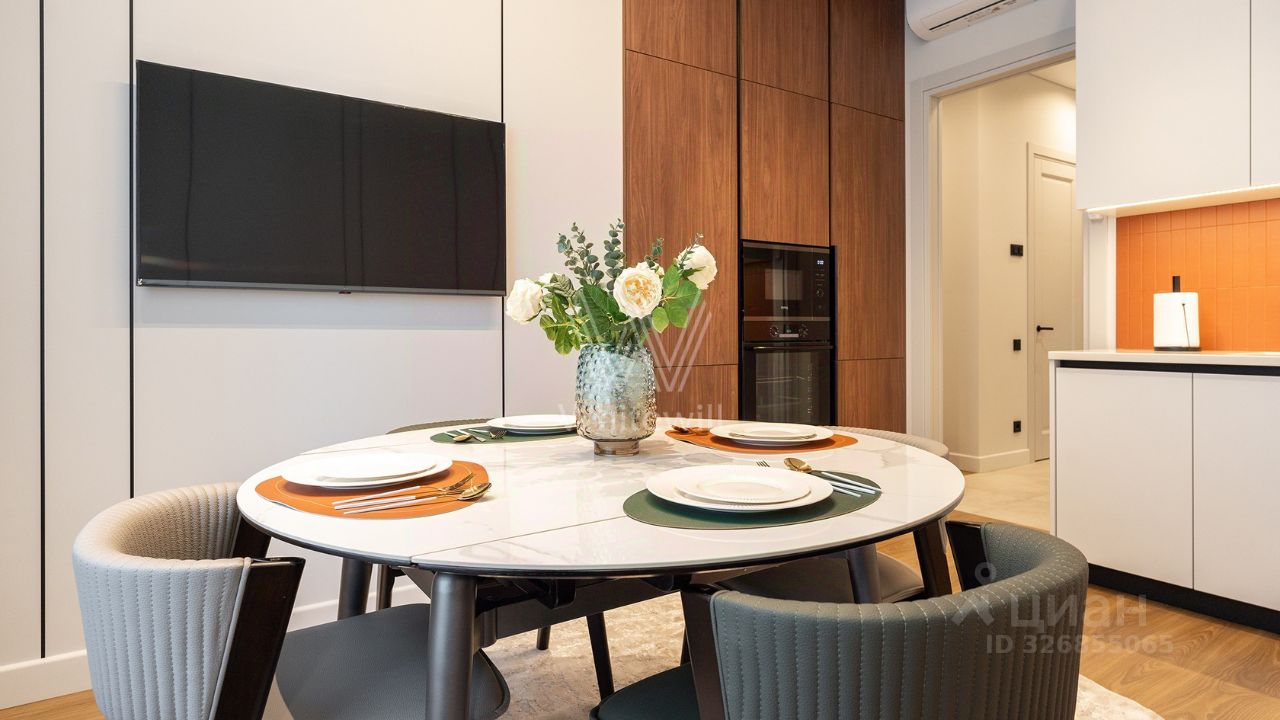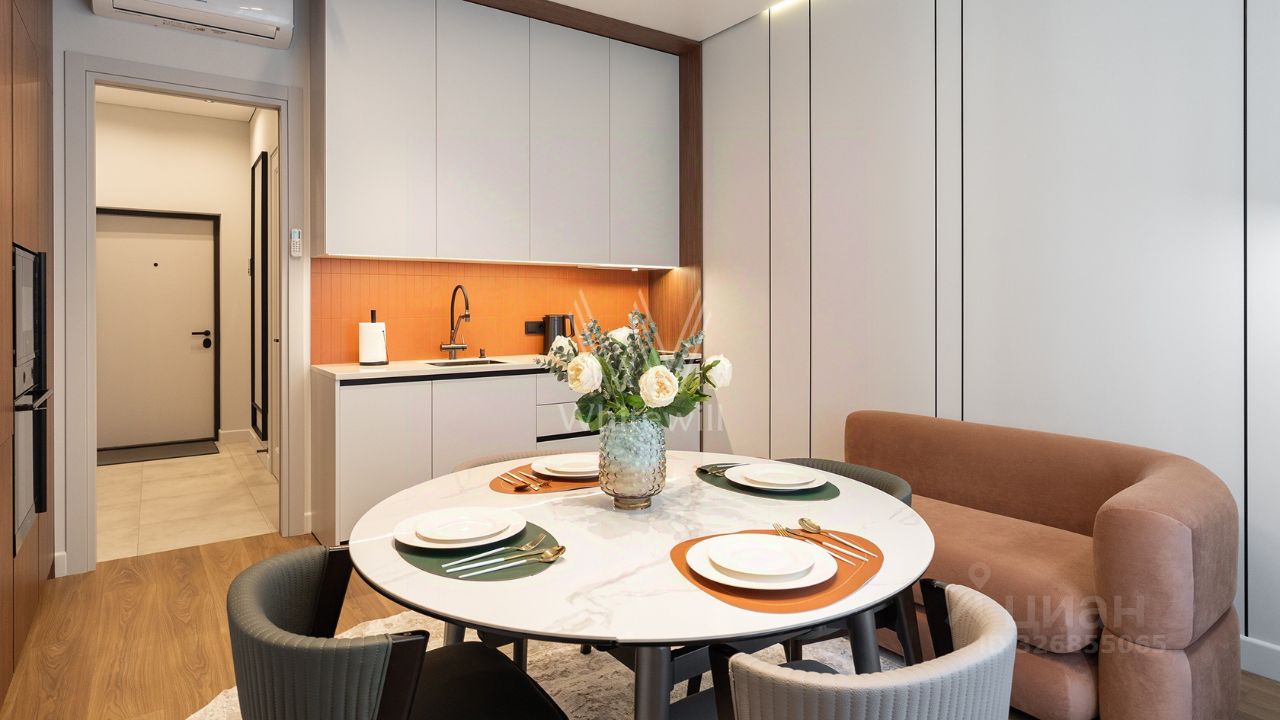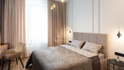 Квартира с 2 спальнями в комплексе бизнес-класса "Серебряный фонтан" в Алексеевском районе. Квартира общей площадью 71 м² расположена на 7 этаже. Выполнена дизайнерская отделка в современном стиле. Интерьер оформлен в светлых тонах с яркими акцентами. Спланирована кухня-гостиная, мастер-спальня с ванной комнатой, гардеробной и выходом на лоджию, вторая спальня, санузел с душевой, гардеробная, прихожая. Квартира полностью меблирована и оборудована бытовой техникой. Из окон открывается вид во внутренний двор-парк.