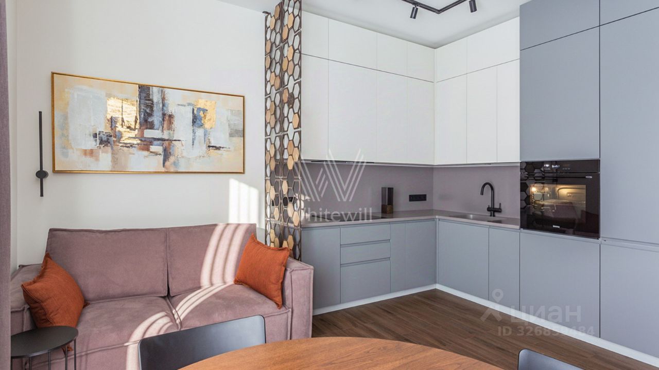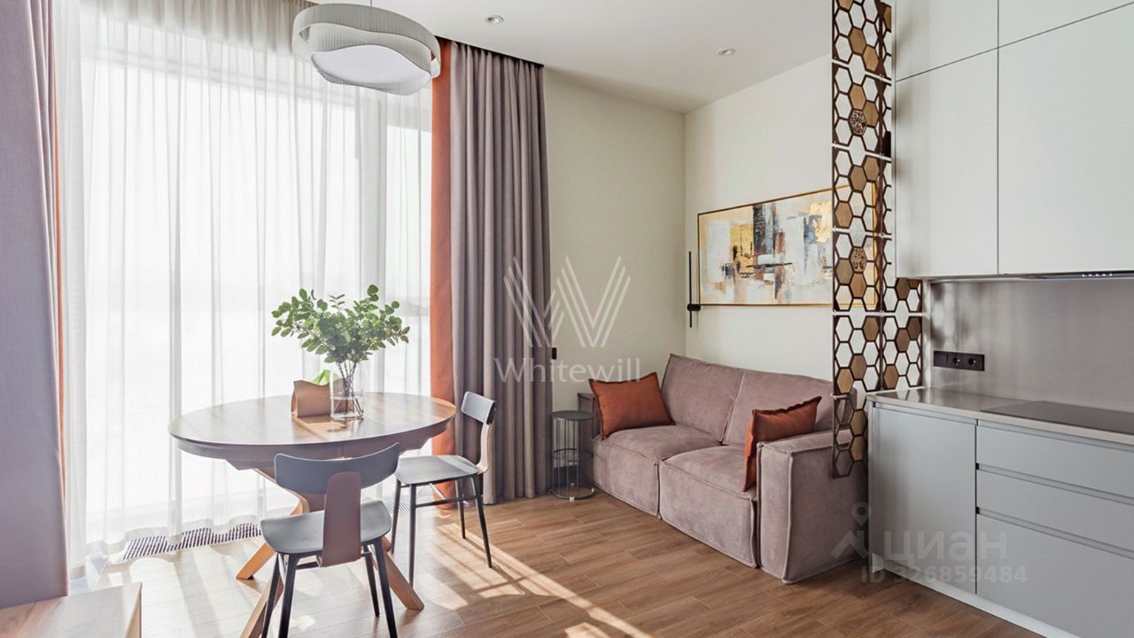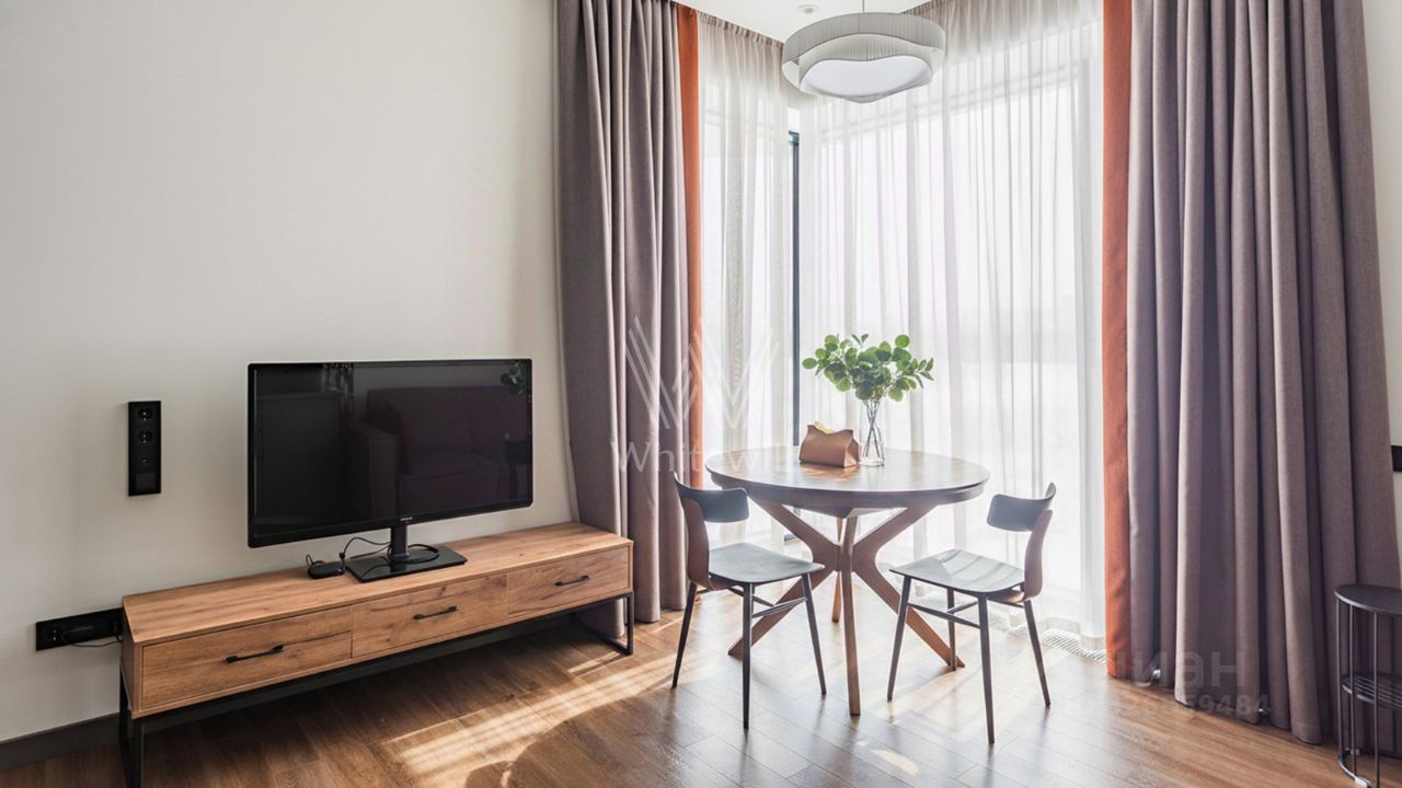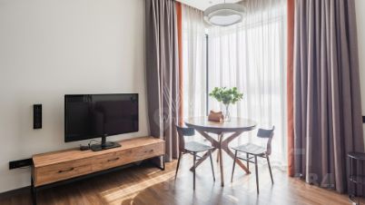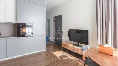 Квартира с 1 спальней в комплексе премиум-класса Primavera. Квартира площадью 42 м² расположена на 5 этаже в корпусе Rossini. Выполнена дизайнерская отделка в современном стиле. Интерьер оформлен в светлых тонах с яркими акцентами. Благодаря панорамным окнам пространство наполнено естественным светом. Спланирована кухня-гостиная, спальня, санузел с душевой, прихожая. Квартира полностью меблирована и оборудована бытовой техникой, установлена система кондиционирования. Из окон открывается вид на Москву-реку. За отдельную плату предлагается машино-место в подземном паркинге и келлер.