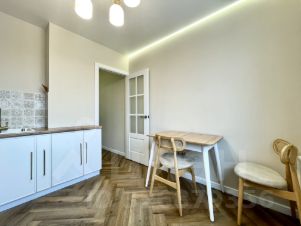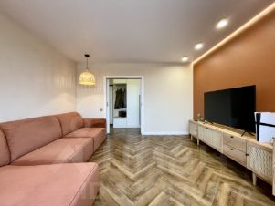 Две изолированные комнаты 15м² + 12м² с утепленной лоджией. Просторная кухня 10м². В квартире выполнен качественный ремонт, теплые полы на лоджии и в санузле. Имеется вся необходимая мебель и техника для комфортного проживания: холодильник, стиральная машина, ТВ, духовой шкаф, СВЧ, вся необходимая мебель и Интернет