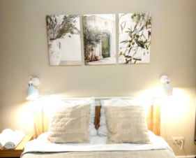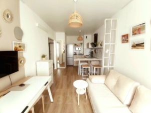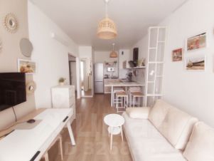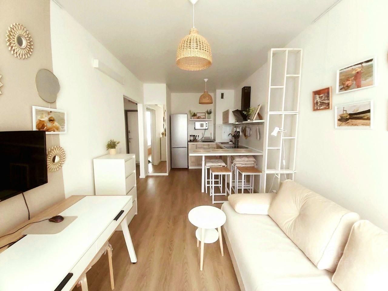 Интерьер квартиры выполнен в дизайнерском стиле, что создает атмосферу уюта и комфорта. Дизайн выполнен в скандинавском стиле с большой любовью. В гостиной небольшая картинная галерея с работами художника Сорольи. В квартире есть вся необходимая мебель: на кухне и в комнате. Совмещенный санузел оборудован ванной. Для вашего удобства установлена современная техника: кондиционер, холодильник, телевизор и стиральная машина. Окна выходят во двор, что позволяет наслаждаться тишиной и спокойствием.