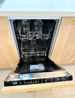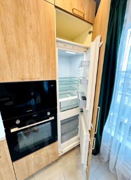 Бытовая техника LG, Indesit, Beko, Gorenje, Haier, Electrolux. Посудомоечная и стиральные машинки, встроенный холодильник с морозилкой, индукционная варочная поверхность, измельчитель отходов (забудете про мусор), фильтр питьевой воды Аквафор с обратным осмосом, установлены хорошие смесители, телевизор 55 дюймов, интернет.