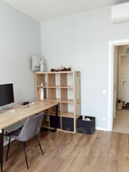 Кабинет: рабочий стол, стеллажи. Комнату можно использовать как вторую спальню.