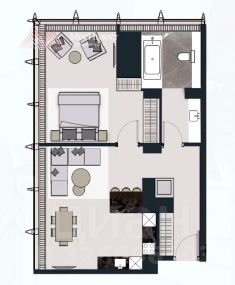 Функциональная планировка: Просторная Угловая гостиная совмещенная с зоной кухни и обеденной зоной, изолированная угловая спальня, просторный холл, ванная комната, хоз/блок.