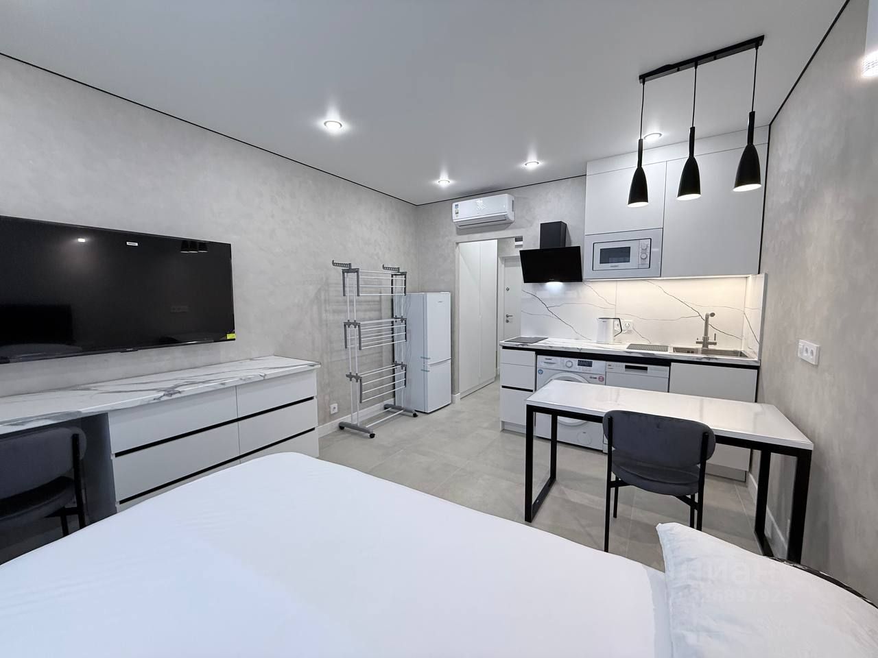 - Каждая квартира полностью укомплектована новой мебелью и техникой премиального уровня: телевизор, кондиционер, посудомоечная машина, стиральная машина, индукционная плита, микроволновая печь, двуспальная кровать с подъемным механизмом.