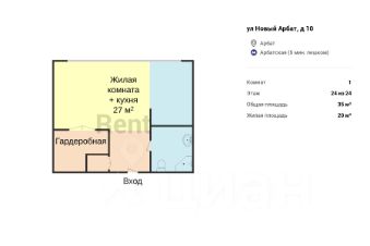 Сдается в аренду уютная видовая однокомнатная квартира на Новом Арбате. Общая площадь квартиры составляет 35 кв. м, из которых 27 кв. м — жилая площадь и 4 кв. м — кухня. Квартира расположена на 24 этаже.