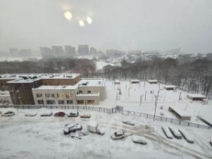 Квартира расположена на 8 этаже монолитного дома, построенного в 2025 году. В доме есть пассажирский и грузовой лифты. Из окон открывается вид на спортивный комплекс и деревья.