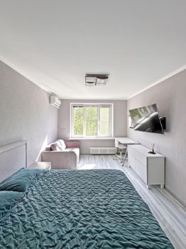 В квартире есть все необходимое для комфортного проживания: новый кондиционер, большой холодильник, стиральная машина, телевизор, большая двуспальная кровать (с ортопедическим матрасом) и просторный рабочий стол, диван для гостей. Красивый вид из окна 6 этажа придает квартире особый шарм.